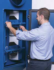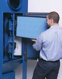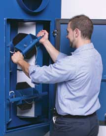 Torit PowerCore TG過濾元件拆裝容易,只需要打開檢修門,不需要任何工具 擰開旋轉式鎖扣,一個人就能輕松取出過濾元件,完成更換。PowerCore過濾元件重量輕,即使在最終更換時,一般也不會超過22.7kg (50) 符合美國OSHA職業安全與健康管理局規定的人力提舉限值