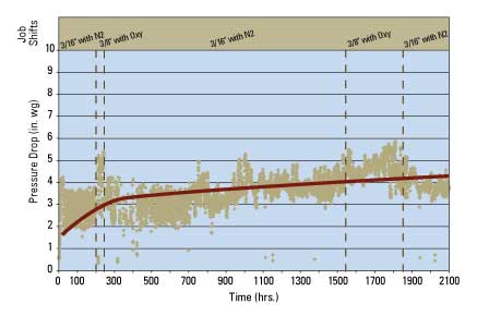 想一想,如果你今天切割3.5mm厚的鋼板,明天換成6mm厚, 這樣的轉粉塵量大大增加。對于PowerCore TG而言,絕對不是問題,因為“ZERO-TURN”零轉向脈沖噴吹系統,令PowerCore過濾元件的清灰效能比傳統濾筒式除塵器更為有效。而且能一直維持恒定的壓差運行,令過濾元件的使用壽命更長