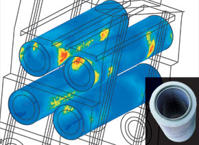 DFO沉流式除塵器獨特的橢圓形濾筒設計,有效提高可處理風量多達25%而沒有增加內部氣流速度,不會導致濾材的磨損。先進的FLUENT®*氣流建模軟件顯示,橢圓形濾筒有較少的高風速區域,減低濾材磨損率,有效延長了濾筒的使用壽命。
